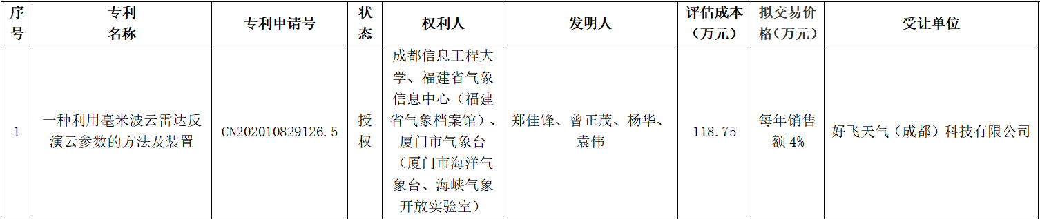 学校拟以独占许可的方式转化“一种利用毫米波云雷达反演云参数的方法及装置”一项专利,许可期限:十年,现将有关事项公示如下: