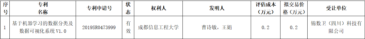学校拟转让“基于机器学习的数据分类及数据可视化系统V1.0”计算机软件著作权,现将有关事项公示如下: