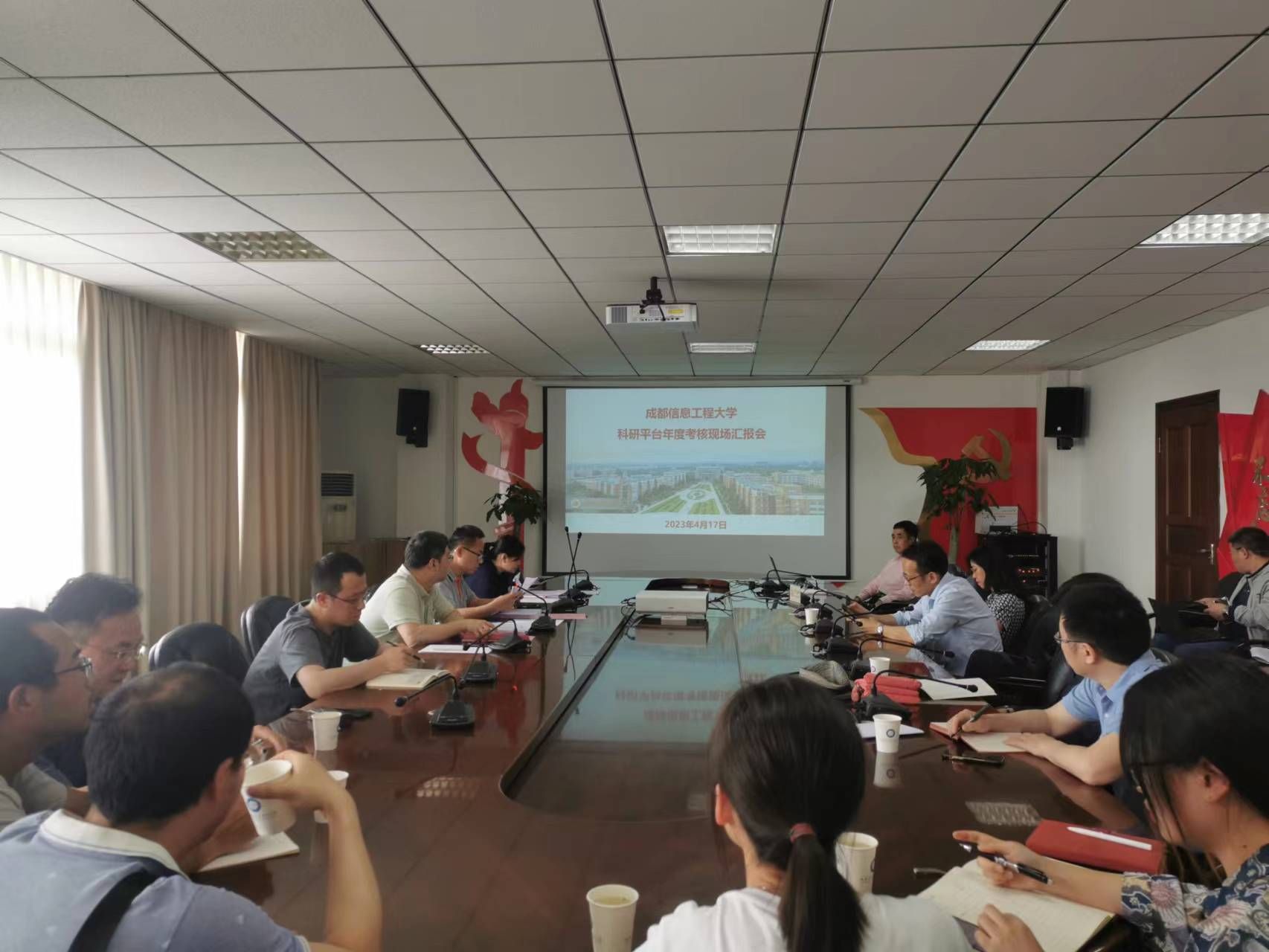 为进一步推进科研平台规范化、科学化管理,促进学校科研平台的有序建设和健康发展,提升学科建设水平。2023年4月17日至4月19日,我校2022年度科研平台考核工作会在行政楼九会议室举行。市厅级及以上重点实验室、研究中心、科普培训基地等42个科研平台负责人及团队成员参加了考核工作会。会议邀请校内专家刘敦虎教授、史朝副教授、罗飞副教授,计财处代表雷达,科技处副处长彭映杰担任评审专家。会议由科技处副处长李秋敏主持。