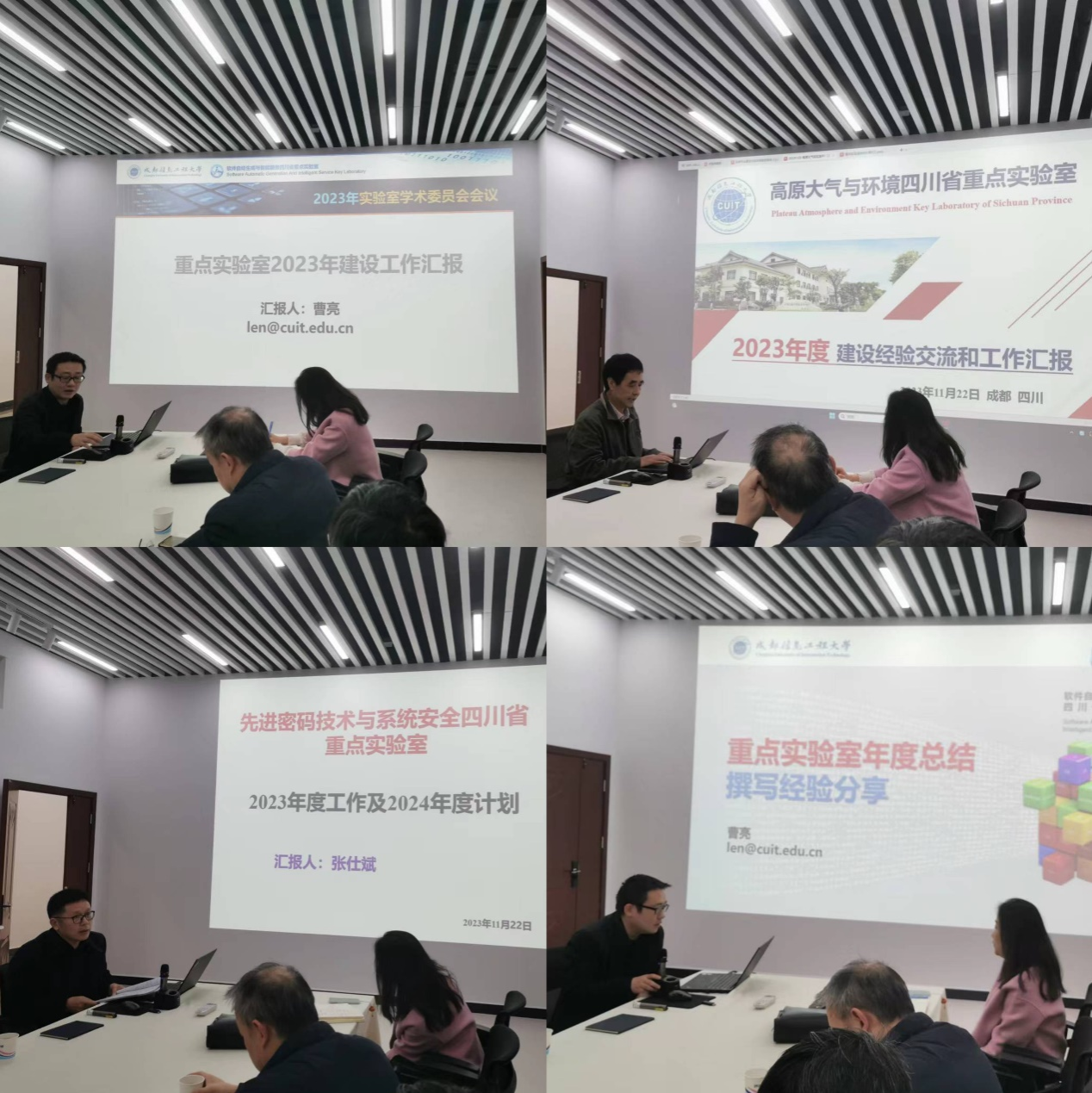 我校高原大气与环境四川省重点实验室负责人文军、软件自动生成与智能服务四川省重点实验室成员曹亮、先进密码技术与系统安全四川省重点实验室负责人张仕斌分别从科研项目申报、开放课题、人才培养、学术交流、社会服务等方面做了建设经验交流及2023年度总结报告。