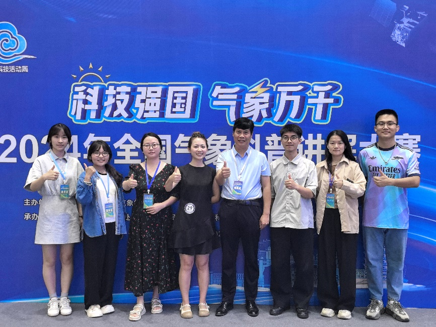 全国气象科普讲解大赛作为行业内极具影响力的赛事,汇聚了来自全国各地的优秀科普人才,受到了学校科技处和学校各科普基地的高度重视,派出来自betway88西汉姆联气象科普基地、全国气象科技(普)文化园区和人工影响天气科普基地的共两位老师和六位学生参赛,由我校科技处副处长柳锦宝带队。我校八名代表与来自全国各个部门总计209名选手同台竞技,取得了优异的成绩。