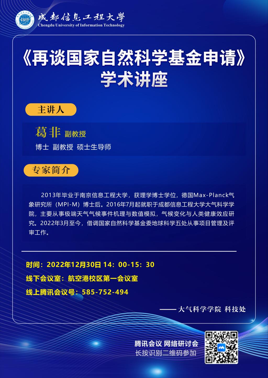 【学术预告】再谈国家自然科学基金申请