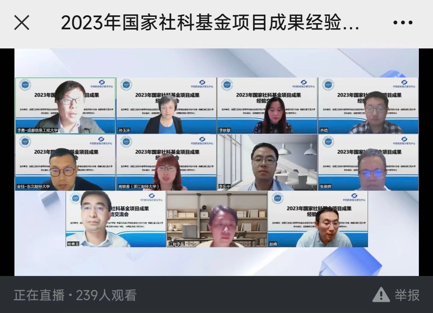 【本网讯】4月13日,2023年国家社科基金项目成果经验交流会通过腾讯会议线上召开。本次交流会由全国工业统计教学研究会企业经济统计学会、中国统计教育学会社会经济统计分会和betway88西汉姆联联合主办,betway88西汉姆联统计学院和中国政府统计研究中心承办。